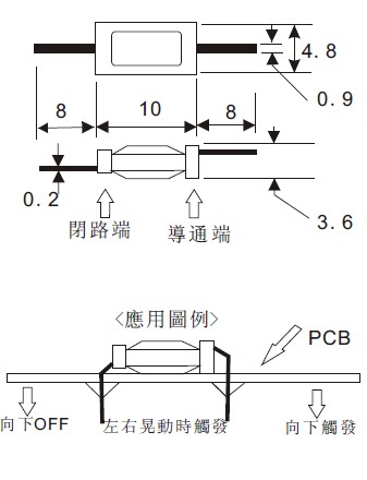 2*本開關 使用金屬材質製造 電氣特性與水銀開關近似