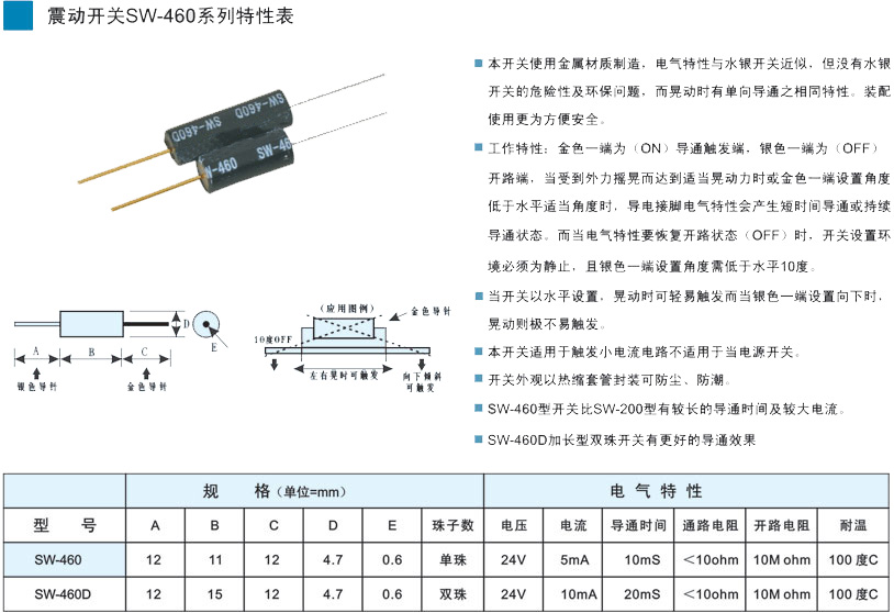 關(guān)鍵產(chǎn)品:滾珠開關(guān),多方向滾珠開關(guān),角度滾珠開關(guān),鋼珠開關(guān),珠子開關(guān),晃動開關(guān),手珠開關(guān),滾珠開關(guān)SW-460