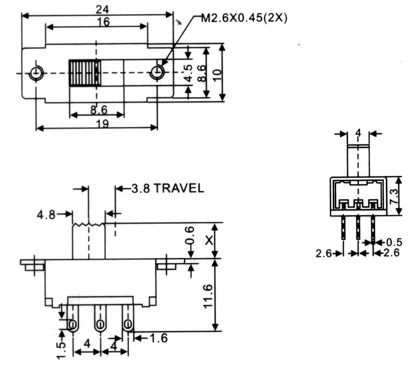 2.開(kāi)關(guān)不常切換的額定電流:最大400mA